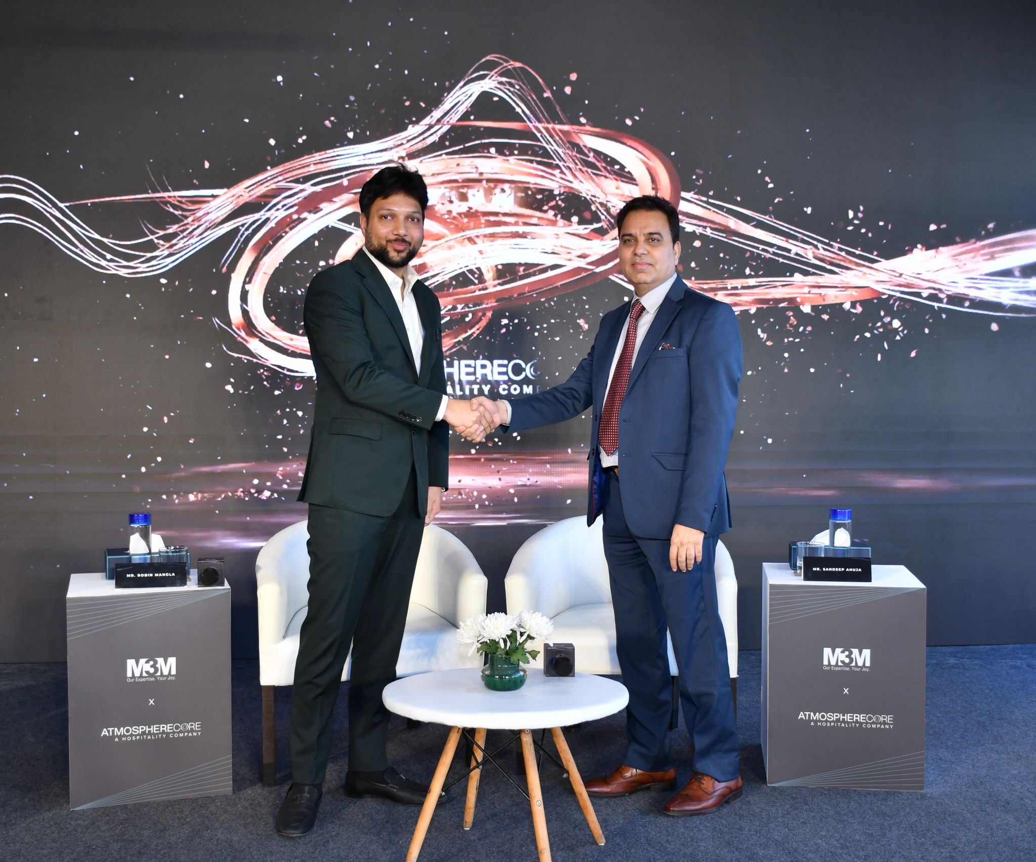 The launch event was marked by insightful conversations with M3M India President Robin Mangla and Atmosphere Living Managing Director Sandeep Ahuja, sharing a common vision for future-ready destinations defined by service, flexibility, elevated experience